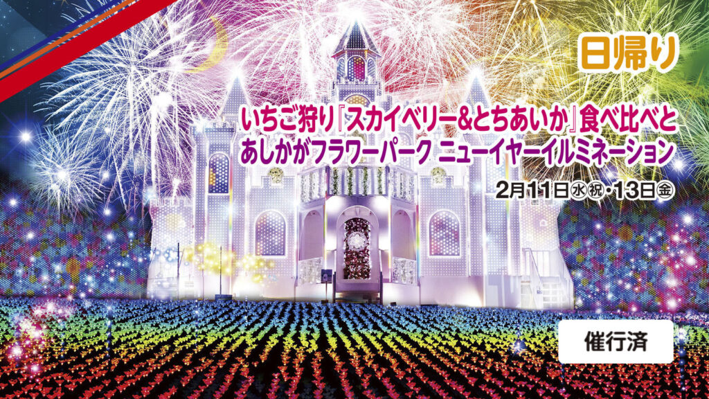 ツアー名:いちご狩りスカイベリー&とちあいか・あしかがフラワーパーク ニューイヤーイルミネーション