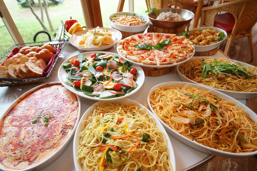 いちご一会はビュッフェ形式のレストランです。地元の野菜や、デザートには、いちごの里敷地内で収穫した新鮮な果物を使用。季節によって違うメニューをお楽しみいただけます。
