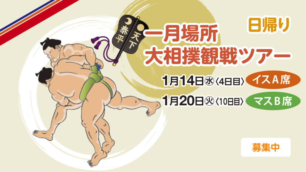 東信各地(上田→佐久)9:40~11:00=<高速道>=両国国技館(大相撲1月場所観覧) 15:00~18:00/18:20 発=<高速道>==東信各地(佐久→上田) 21:30~22:30