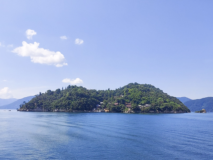 琵琶湖八景のひとつで、周囲2㎞の琵琶湖で沖島に次ぐ2番目に大きい島です。島の名は「(神を)斎く(いつく)島」に由来し、その中の「いつくしま」が「つくぶすま」と変じ「竹生島」になりました。琵琶湖に浮かぶパワースポットの島として、多くの人が訪れています。 *長浜港から約 30 分